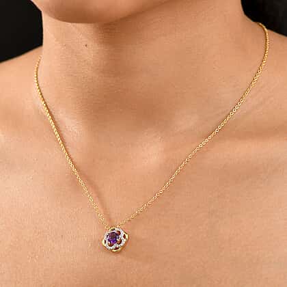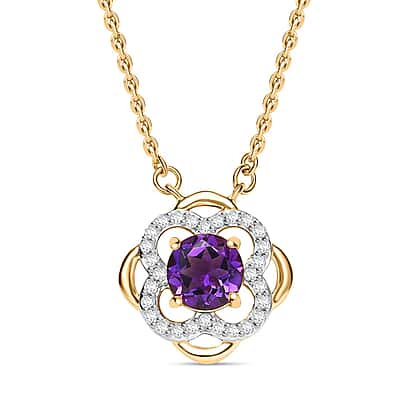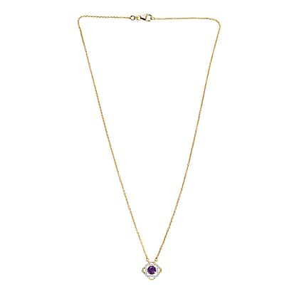 Natural Moroccan Amethyst & White Zircon Blooming Elegance Necklace (Size - 20) in 18K Vermeil Yellow Gold Plated Sterling Silver 1.08 Ct.