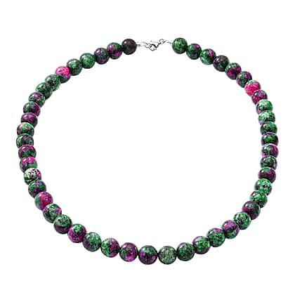 Natural Ruby Zoisite Beads Necklace (Size - 20) With Lobster Clasp in Sterling Silver 250.00 Ct.