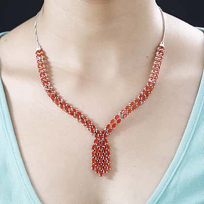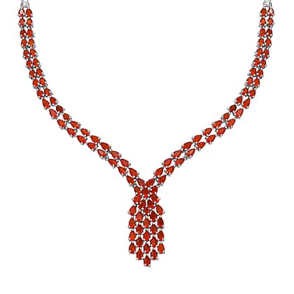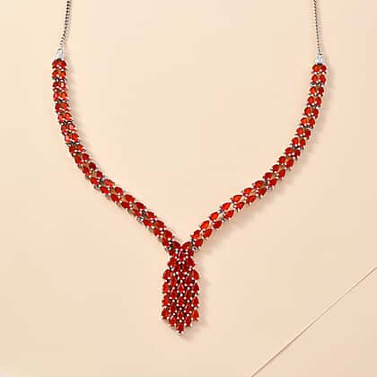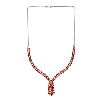 Natural Salamanca Fire Opal Necklace (Size - 20) in Rhodium Overlay Sterling Silver 14.78 Ct, Silver Wt. 18.68 Gms