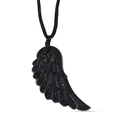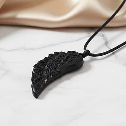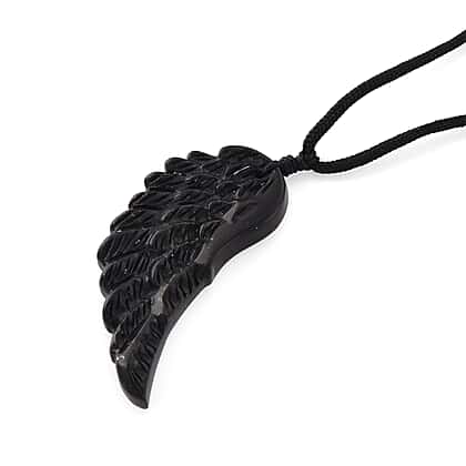 Natural Shungite Angel Wing Adjustable Necklace (Size-28) 30.00 Ct.