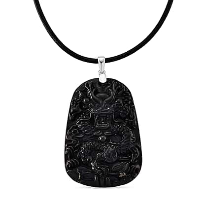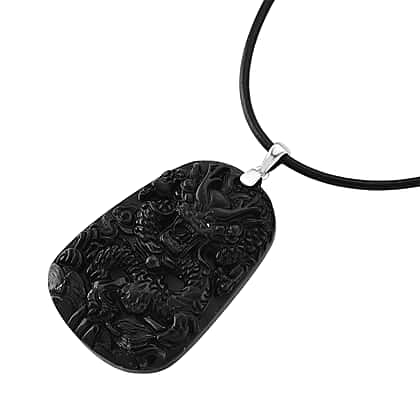 Own a powerful look with this natural shungite carved dragon pendant crafted to showcase striking artistry and bold detail. The deep black stone is intricately carved with a powerful dragon motif, featuring layered scales, flowing lines and defined contours that create dramatic texture. The detailed relief work adds depth and movement, giving the design a dynamic presence. Its rectangular silhouette enhances the strong visual structure, while the smooth polished edges provide a clean finish. Suspended from a sleek cord, this pendant delivers statement style with intricate craftsmanship and commanding character.