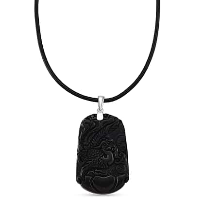 Natural Shungite Carved Pheonix Sterling Silver Pendant with Chain (Size - 20) 95.00 Ct.