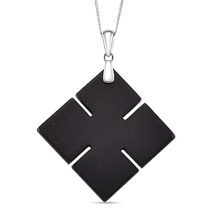 Natural Shungite Celtic Cross Pendant with Chain (Size 18) with Lobster Clasp in Rhodium Overlay Sterling Silver 64.90 Ct.