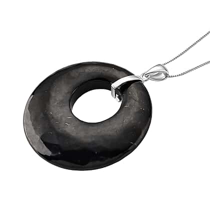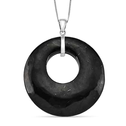 Natural Shungite Pendant with Chain (Size 18) in Rhodium Overlay Sterling Silver 133.00 Ct.