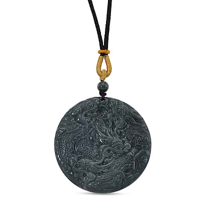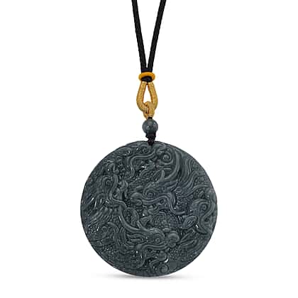 Natural Type A Jadeite Dragon Necklace (Size 28 Adjustable) with Black Cord 295.00 Ct.