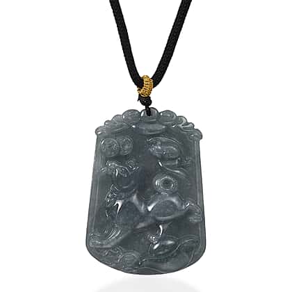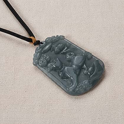 Natural Type A Jadeite Jade Stone Zodiac Dog Necklace with Cotton thread (Size 26 Adjustable) 60.00 Ct.