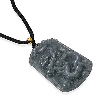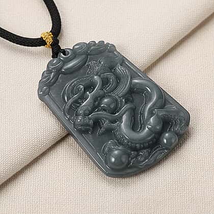 Natural Type A Jadeite Jade Stone Zodiac Dragon Necklace with Cotton Thread (Size 26 Adjustable) 60.00 Ct.