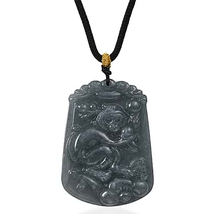 Natural Type A Jadeite Jade Stone Zodiac Monkey Necklace with Cotton Thread (Size 26 Adjustable) 60.00 Ct.