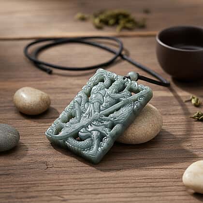 Natural Type A Jadeite Warrior Necklace with Black Cord (Size 28) 195.00 Ct.