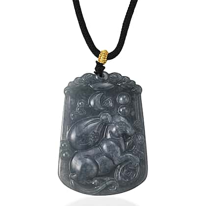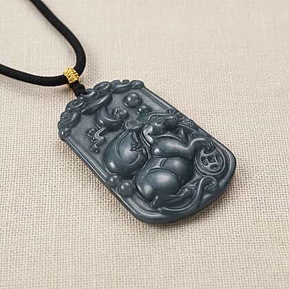 Natural Type A Jadeite Zodiac Rat Necklace with Cotton Thread (Size 26 Adjustable) 60.00 Ct.