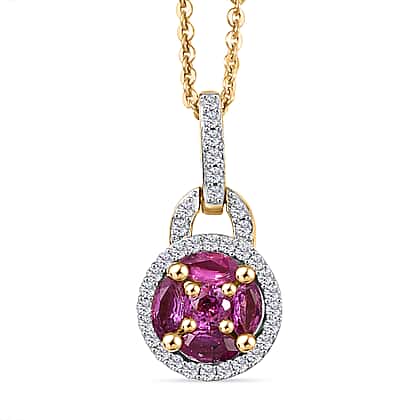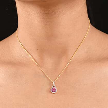 Natural Unheated Ruby & White Zircon Pendant with Chain (Size 20) in 18K Vermeil Yellow Gold Plated Sterling Silver