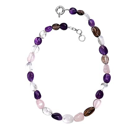 Neapolitan Dreams - Natural Zambian Amethyst,Galilea Rose Quartz, Smoky Quartz & Crystal Quartz Platinum Overlay Necklace (Size - 18-1 EXT) 400.00 Ct.