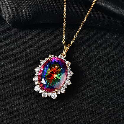 Nebula Quartz Doublet & White Zircon Pendant with Chain (Size 20) in 18K Vermeil Yellow Gold Plated Sterling Silver 11.70 Ct.