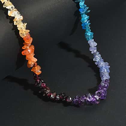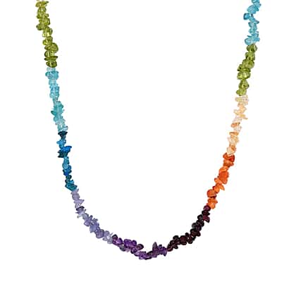 Neon Apatite Multi Gemstone Rainbow Necklace (Size 20) in 14K Gold Overlay Sterling Silver 73.46 Ct.