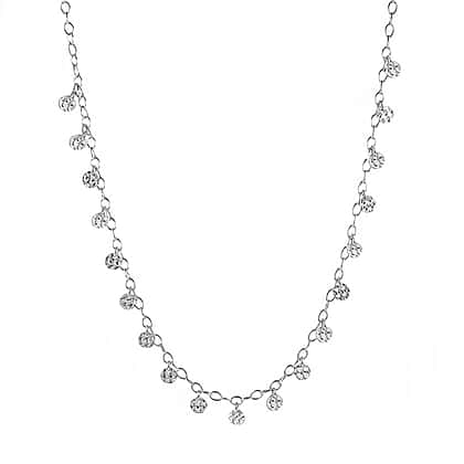Embossed Disc Charm Necklace Size 18 in Rhodium Plated Sterling Silver