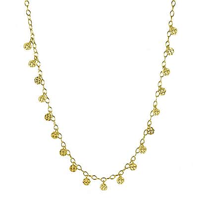Embossed Disc Charm Necklace Size 18 in Yellow Gold Plated Sterling Silver