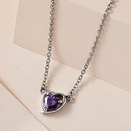 Simulated Purple Sapphire Heart Necklace (Size - 20) in Platinum Overlay Sterling Silver 1.34 Ct.