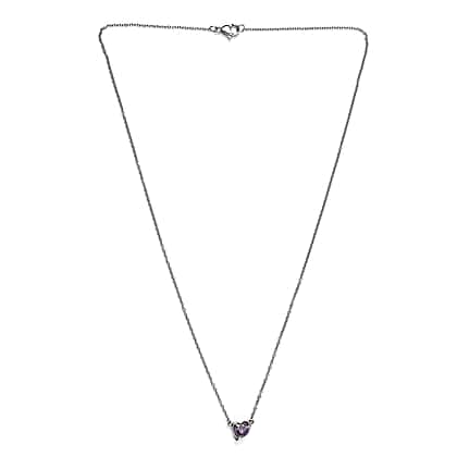 NY Closeout - Simulated Purple Sapphire Heart Necklace (Size - 20) in Platinum Overlay Sterling Silver 1.34 Ct.