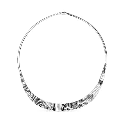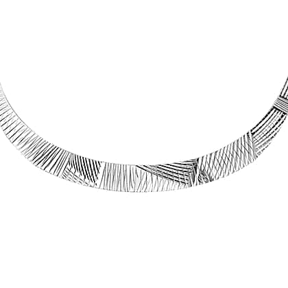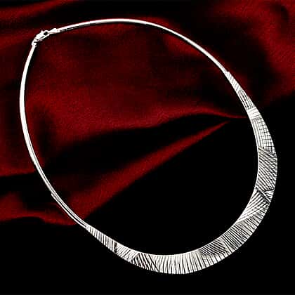 Bold and feminine at the same time, this gorgeous Celopatra necklace is crafted in fine silver. The Size-17 necklace will hug your neck and bring the spotlight on it. It redefines your dressing with a regal style glazed with the elegant lustre of sterling silver. Textured finish adds to the beauty of this fabulous-looking jewellery that is designed to evoke awe at a festive occasion or party.