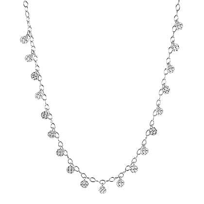 Textured Small Coin Necklace in Sterling Silver 18 Inch