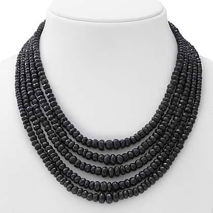 800 Carat Boi Ploi Black Spinel Multi Strand Beaded Necklace in Silver 18 Inch