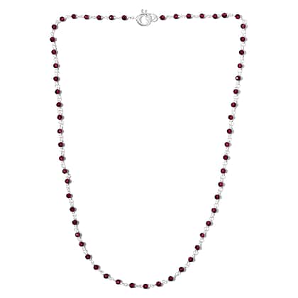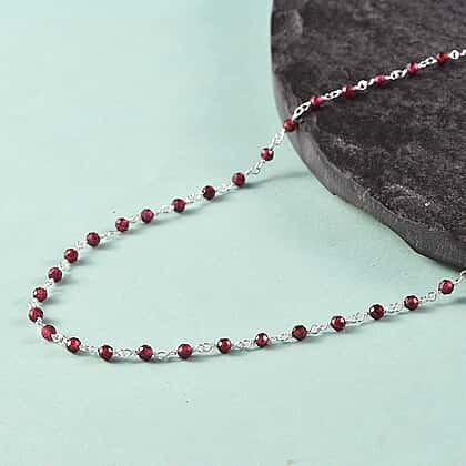 12.5 Ct. Rhodolite Garnet Station Beads Necklace Size 18 in Sterling Silver