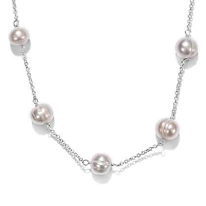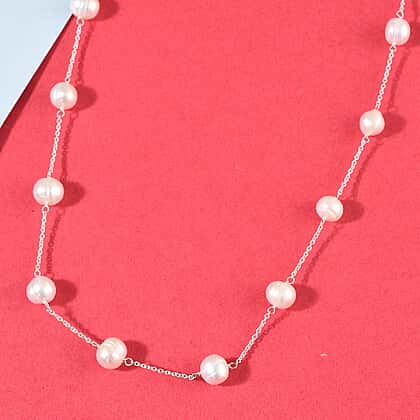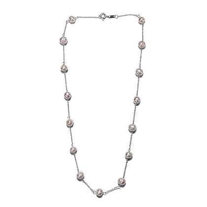 One Time Deal- Freshwater Pearl Station Necklace (Size 18) in Sterling Silver