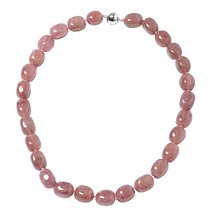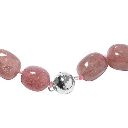Strawberry Quartz Beaded Necklace in Sterling Silver with Magnetic Clasp 5 Grams