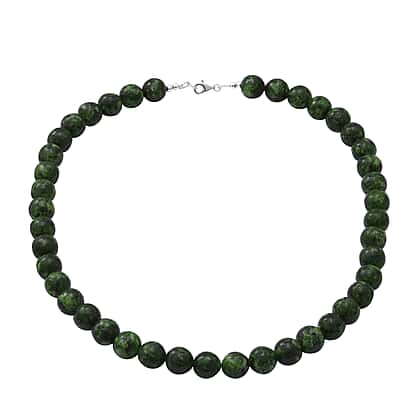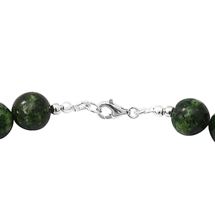 320 Ct. Green Jasper Beaded Necklace in Sterling Silver 18 Inches