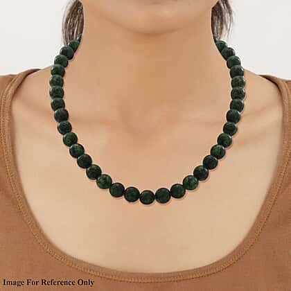 - GEMSTONE: Green jasper is also believed to treat skin disorders. To make our necklace comfortable, each 12 mm bead is buffed with excellence