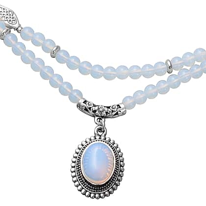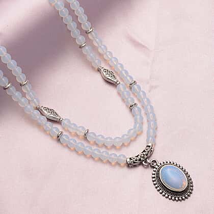- GEMSTONE CUT AND CARAT: CUT OF GEMSTONE, CARAT: The beads are made from Opalite An oval pendant cut from Opalite offers a classic design