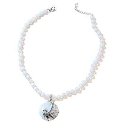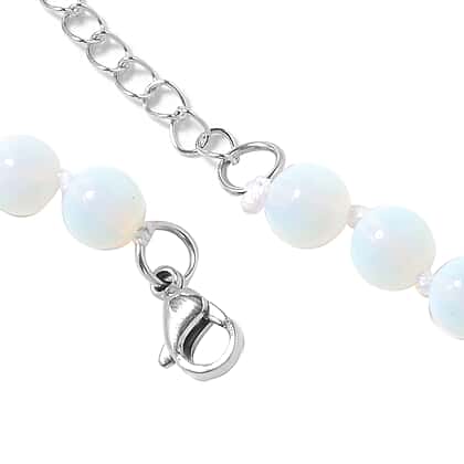 Opalite (Rnd), White Austrian Crystal Peacock Beads Necklace (Size 18 with 1.5 inch Extender) in Stainless Steel 225.51 Ct.