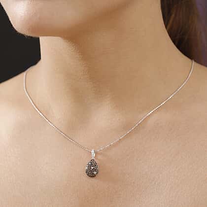 Orange Red Diamond & White Natural Diamond Pendant with Chain (Size 20) in Rhodium Overlay Sterling Silver