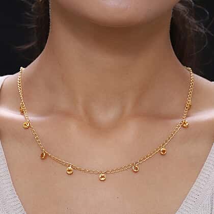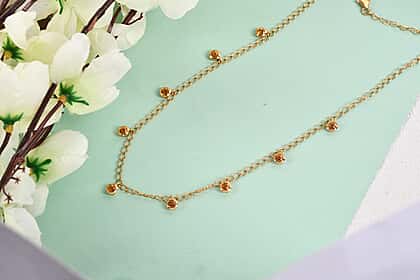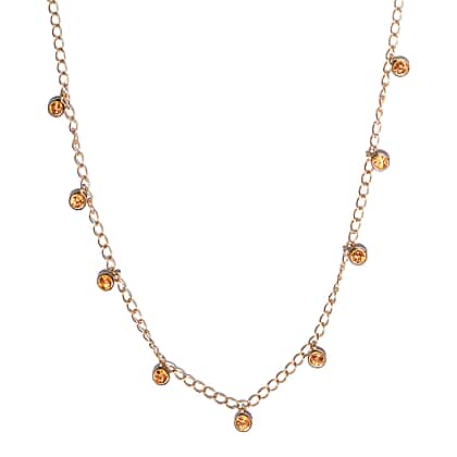 3.15 Ct. Orange Sapphire Station Necklace Size 18 in Yellow Gold Plated Sterling Silver
