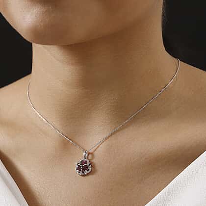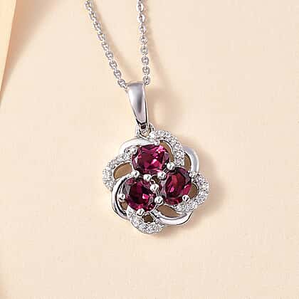 Orissa Natural Rhodolite Garnet & White Zircon Pendant with Chain (Size - 20) in Rhodium Overlay Sterling Silver 1.88 Ct.