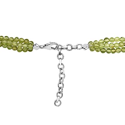 An attractive piece of jewellery in fine silver, the Peacock Triplet quartz and amethyst necklace add a dash of glamour to our party dresses. The Size - 18 necklace offers multiple dressing options with its 2-inch extender that can be used to create different looks. The necklace has three independent bead strands made with peridots, amethysts and apatites that stand out with their unique colours. It is crafted in platinum-plated sterling silver.