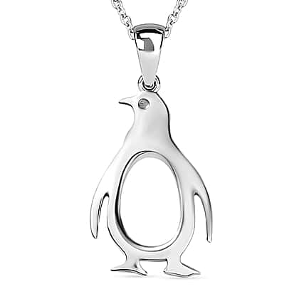 Celebrate the playful charm of nature with this delightful penguin pendant, perfect for any animal lover. The sleek and minimalist design captures the essence of a penguin, symbolising adaptability and community. This unique piece is crafted in rhodium-overlay sterling silver, offering lasting shine and durability. Its whimsical design makes it a versatile accessory suitable for both casual and formal occasions. With its chain measuring 20 inches, this pendant effortlessly enhances your style, whether worn alone or layered with other pieces.