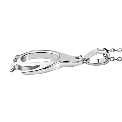 Penguin Pendant with Chain (Size 20) in Rhodium Overlay Sterling Silver