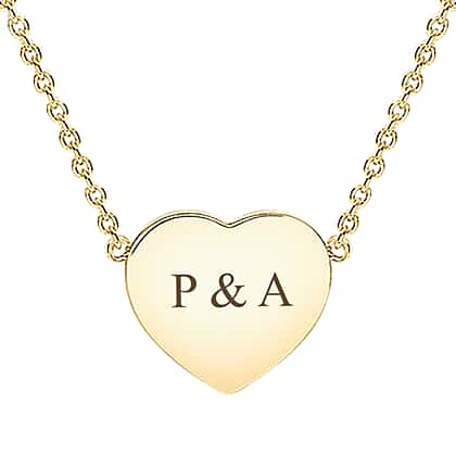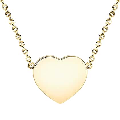 Personalised Engravable 9K Yellow Gold Heart Disc Necklace, Size 16+1-Inch