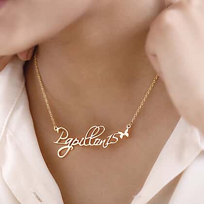 This personalised butterfly name necklace is a one-of-a-kind piece of jewellery perfect for adding a personal touch to your look. This necklace features a beautiful butterfly pendant and your chosen name that can be engraved in an elegant script font. The necklace is crafted from high-quality 925 sterling silver and hangs from a delicate silver chain, giving it a timeless and elegant appearance. The necklace is princess length so that it will sit perfectly on the collarbone. The script font is elegant and easy to read, making sure your chosen name is always legible. Available in three stunning overlays, this dainty necklace is sure to delight you. It is a thoughtful and unique gift for yourself or a loved one, a perfect way to show them how much you care.