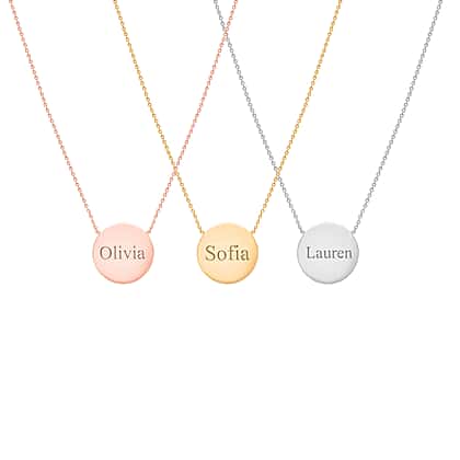 Personalised Engravable 15mm Disc Adjustable Necklace in Silver,Size 16-17 Inch