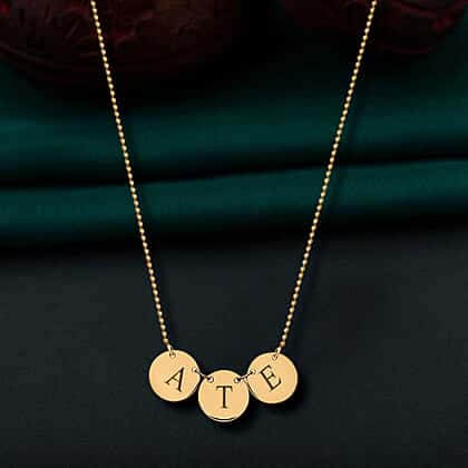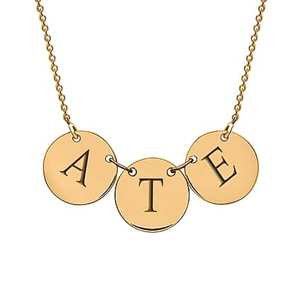 Personalised Engravable 9K Gold Triple 10mm Initial Disc Adjustable Necklace, Size-16-17 Inch