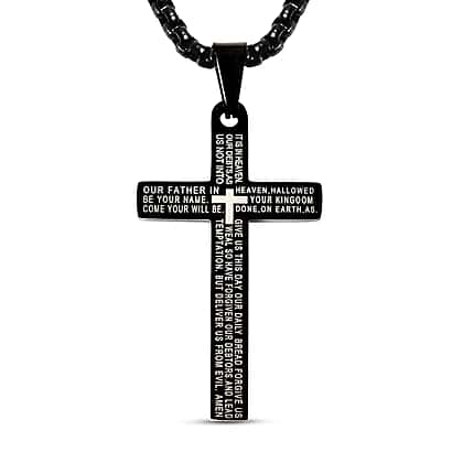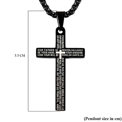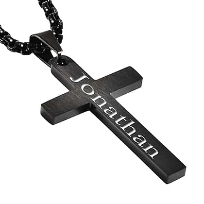 Personalised Engravable Cross Pendant With Chain (Size - 21.50) in Sterling Silver Black Tone
