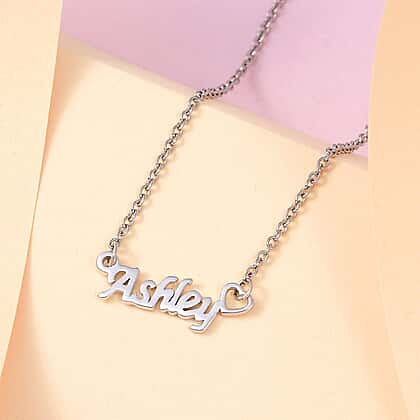 Personalised Engravable Heart Name Necklace in Silver, Size - 18-2 Inch, Font- Italic