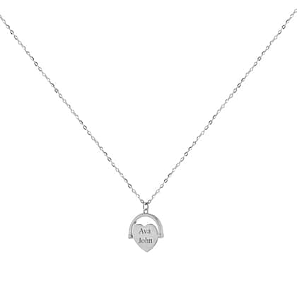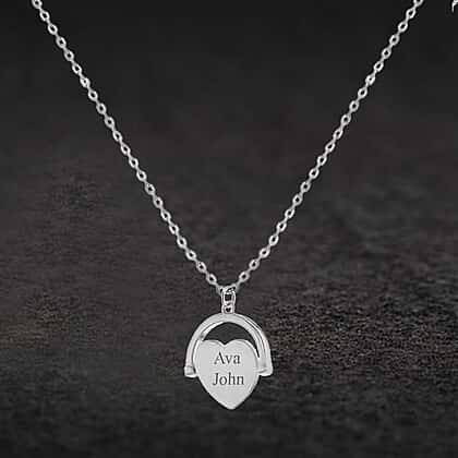 Personalised Engravable Rhodium Plated 17.3mm x 21mm Heart Spinner Adjustable Necklace in Silver, Size-17-18 Inch