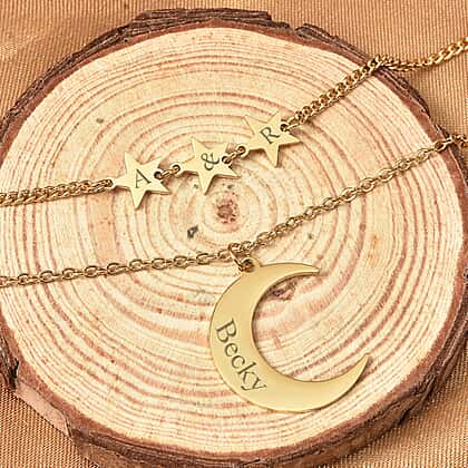 Personalised Engravable Stars and Moon Layered Necklace Size 17.5 Inch