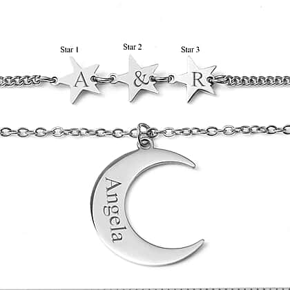 • PERSONALISED: The moon pendant can be engraved up to 8 characters, while the stars pendants can be engraved up to 1 character each