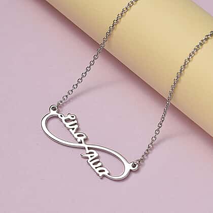 Personalised Engravable Two Name Infinity name Necklace in Silver, Size - 18-2 Inch, Font- Free Hand