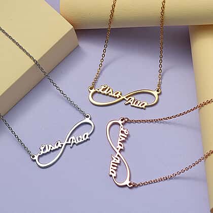 Symbolise your infinite love with the Engravable Two Name Infinity Name Necklace in Silver. This beautiful necklace features an elegant silver infinity symbol with two personalised names engraved in exquisite script. The delicate design adds a touch of elegance to any outfit, making it perfect for special occasions or daily wear. In addition, the high-quality silver guarantees the necklace's durability, making it a valuable addition to any jewellery collection. Celebrate your love and connection with this Engravable Two Name Infinity Name Necklace in Silver, a perfect gift for your loved one or yourself.