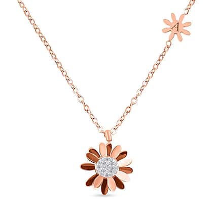 The personalised necklace comes with a floral design pendant woven in a curb chain. The necklace has two pendants designed in a flower shape. The centred pendant is studded with 1mm round white Austrian crystal with the front-back positioning of petals. The second pendant is more petite in size and adds the best personalisation feature to this necklace. A small flower design can be engraved with the initials of your or your loved one. This engravable pendant on the top corner makes this necklace perfect for personalised jewellery. You can engrave any one letter on that pendant.